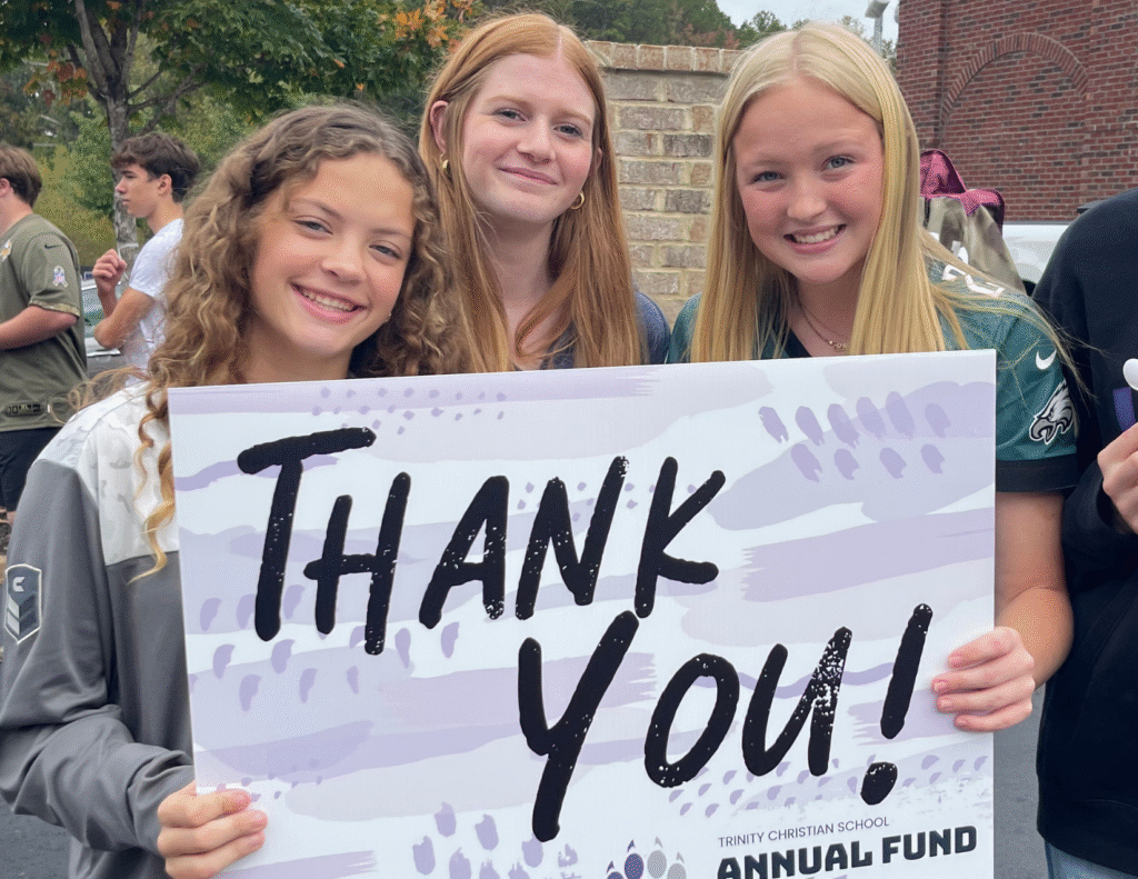 We recognize people have many philanthropic priorities, but it is our hope that every parent will include Trinity in his or her list of charitable priorities. A gift to TCS is an important investment in your student and in the future. A gift to Trinity has a generational impact on the students who attend, the communities where they become planted, and in the families they will raise.